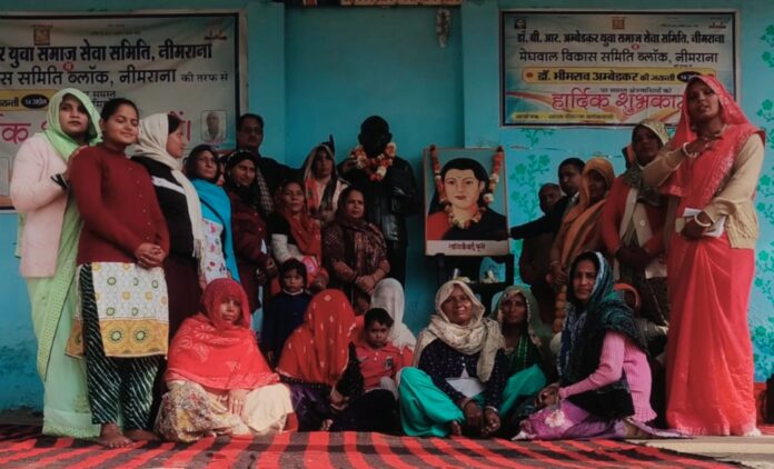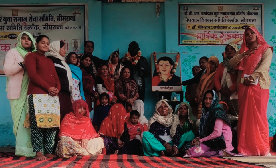 नीमराना । कस्बे के अम्बेडकर पार्क में देश की पहली महिला शिक्षिका सावित्रीबाई फुले की 194 वीं जयंती मनाई गई। राजस्थान मेघवाल परिषद अलवर के नेतृत्व मे महिला ब्लॉक अध्यक्ष माया देवी की अध्यक्षता में मनाई गई। कार्यक्रम का शुभारंभ सर्वप्रथम सावित्रीबाई फूले के चित्र समक्ष पुष्प अर्पित कर दीप प्रज्जवलित कर किया। इस कार्यक्रम के मुख्य अतिथि राजस्थान मेघवाल परिषद के जिला अध्यक्ष सुरेश चंद्र रेवाड़िया व ब्लॉक अध्यक्ष महावीर प्रसाद चरर्खिया रहे इस कार्यक्रम के विशिष्ठ अतिथि राजस्थान महात्मा ज्योतिबा फूले विकास मंच के तहसील अध्यक्ष थावरमल सैनी, तालुका विधिक सेवा समिति की किरण सामरिया रही। वक्ताओं ने सावित्रीबाई फुले के जीवन पर प्रकाश डालते हुए कहा इन्होंने शिक्षा के प्रति अलग जगाकर घर-घर ढाणी ढ़ाणी जाकर शिक्षा के प्रति जागरूक किया उनके जीवन से प्रेरणा लेकर आगे बढ़े। इस मौके पर सुमन कुमारी,सुरेखा, पूनम कुमारी, शर्मिला, कविता सैनी, जानकी सावंत, पूजा मोरोडिया,सुशीला,ममता देवी पार्षद सुप्रिया,राजू सिंह सांमरिया एडवोकेट रामनिवास सामरिया सहित बड़ी संख्या में लोग मौजूद रहे।